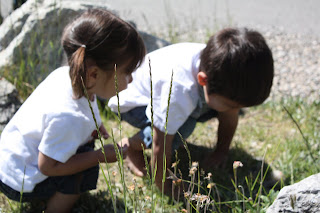 Isabelle loved her natural "blocks" at the creek, Yoho